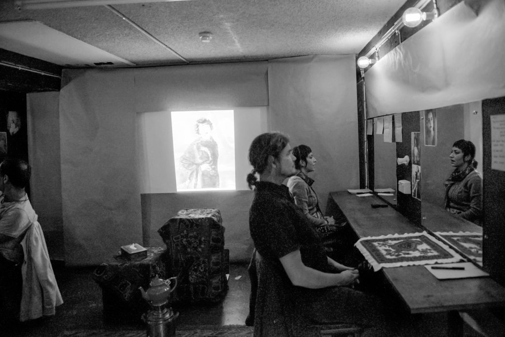 A journey through memories and photographs, to see the un-photographed face of an ordinary, brave woman, who challenged some stereotypes before she was murdered. In this interactive performance the artist tries to imagine her own grandmother’s face, while listening to stories from the audience about women who influenced their own various cultures and societies.