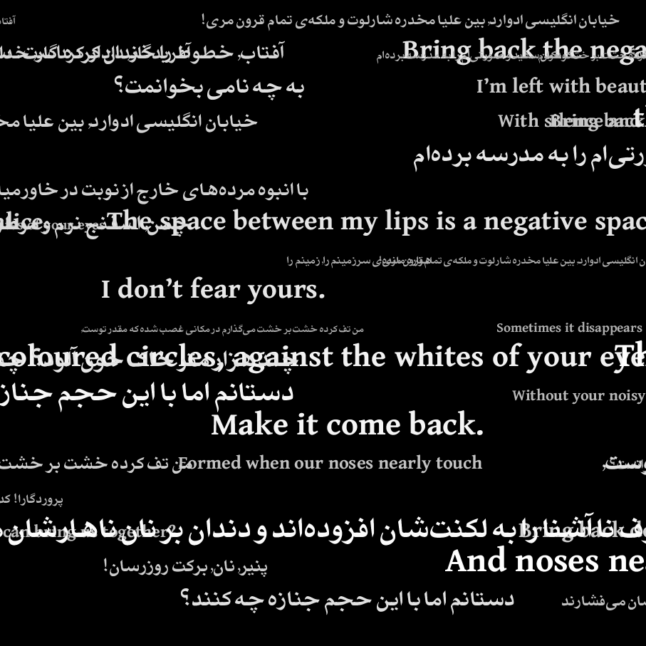 Tower of Babel may be available for touring and/or co-presentations from 2021. For any enquiries, Please contact Nasim Khosravi